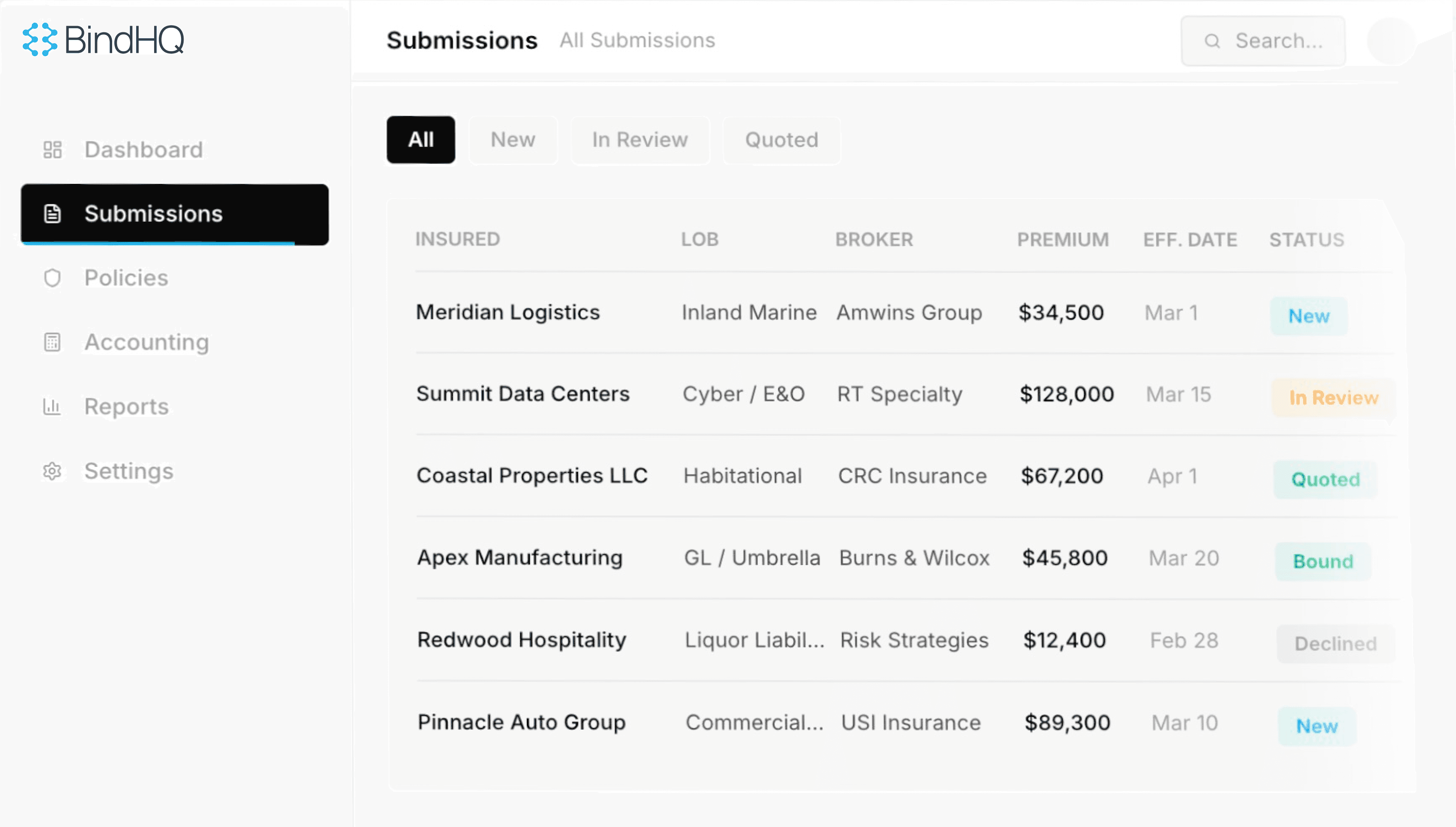BindHQ gives you a single pipeline view across every account, every market, and every open subjectivity — so nothing falls through the cracks.